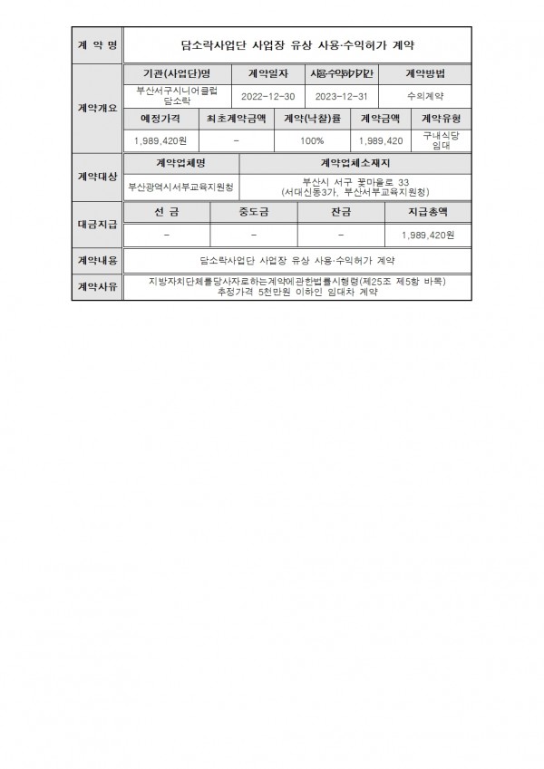 공지사항 HOME 커뮤니티 공지사항 공유하기 인쇄하기 부산서구시니어클럽 2023년 수의계약 공고의 건 페이지 정보 작성자 부산서구시니어클럽 댓글 0건 조회 10,869회 작성일 23-02-16 10:35 본문 . 목록 이전글부산서구시니어클럽 2022년 세입세출 결산서 공고의 건 23.02.27 다음글2023년 부산서구시니어클럽 노인일자리 담당자 채용 공고의 건 23.02.09 댓글목록 댓글목록 등록된 댓글이 없습니다.