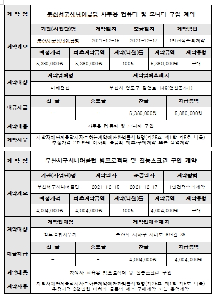 부산서구시니어클럽 2021년 수의계약 공고합니다.
