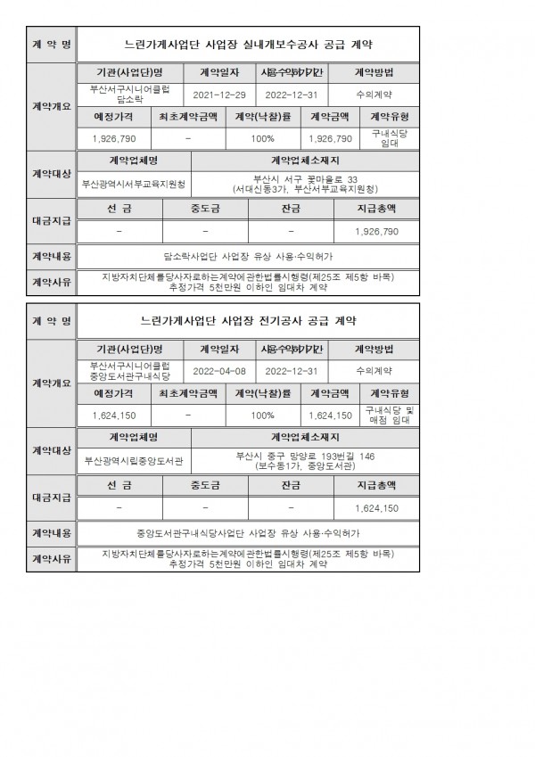 부산서구시니어클럽 중앙도서관구내식당 2022년 수의계약