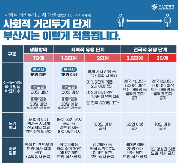 '사회적 거리두기 단계' 부산시는 이렇게 적용됩니다. 페이지 정보 작성자 부산서구시니어클럽 댓글 0건 조회 11,396회 작성일 20-11-24 14:58 본문 사회적 거리두기 단계 개편(2020.11.07.~해제시까지) 목록 이전글2021년도 노인일자리 및 사회활동 지원 사업 참여자 모집 공고 20.11.24 다음글부산서구시니어클럽 3차 추가경정 세입세출예산서 공고 20.10.23 댓글목록 댓글목록 등록된 댓글이 없습니다.