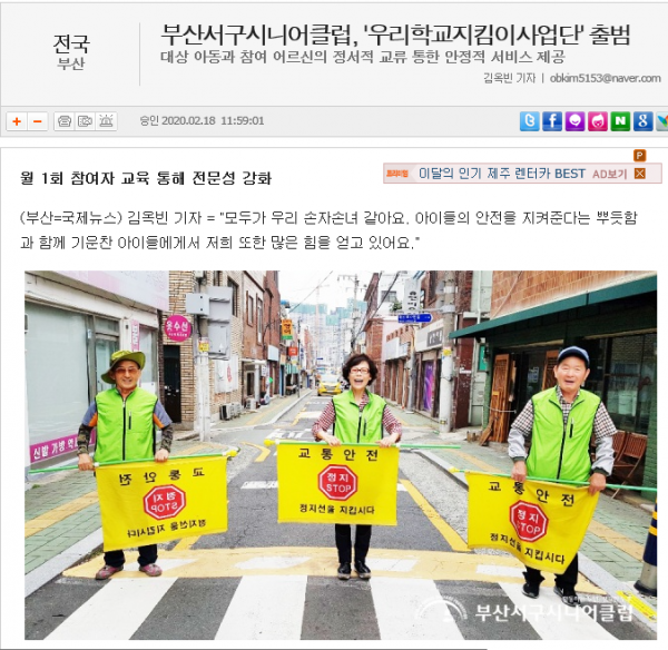 [언론보도:국제뉴스]부산서구시니어클럽,'우리학교지킴이사업단'출범 페이지 정보 작성자 부산서구시니어클럽 댓글 0건 조회 7,943회 작성일 20-02-20 17:07 본문 국제뉴스 2020면 2월 18일 김옥빈기자 [기사원본링크] http://www.gukjenews.com/news/articleView.html?idxno=1243005 목록 이전글노인에 반하다! 노인은 일할 수 없는 사람이라는 생각에 반대합니다! 20.09.21 다음글[언론보도:복지유관기관]상큼한 노후를 만들기 위해 일하는 100세! 20.02.03 댓글목록 댓글목록 등록된 댓글이 없습니다.