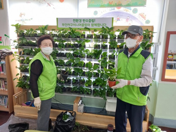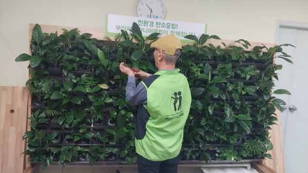"친환경 탄소중립, 부산서구시니어클럽이 함께합니다." 시니어 수직정원가꾸미사업단