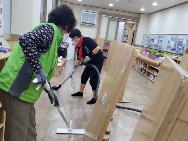 "아이들이 생활하는 곳은 우리가 책임지고 깨끗하게!" 시니어보육시설지원사업단